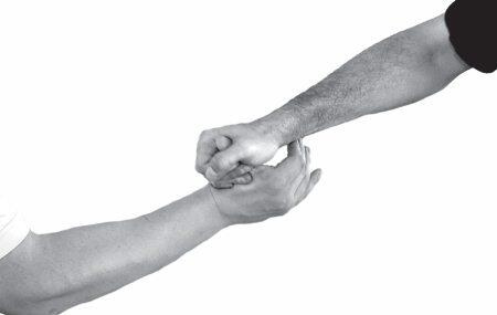 В редких случаях, при очень большом размере руки противника, можно удовлетвориться захватом двух пальцев.