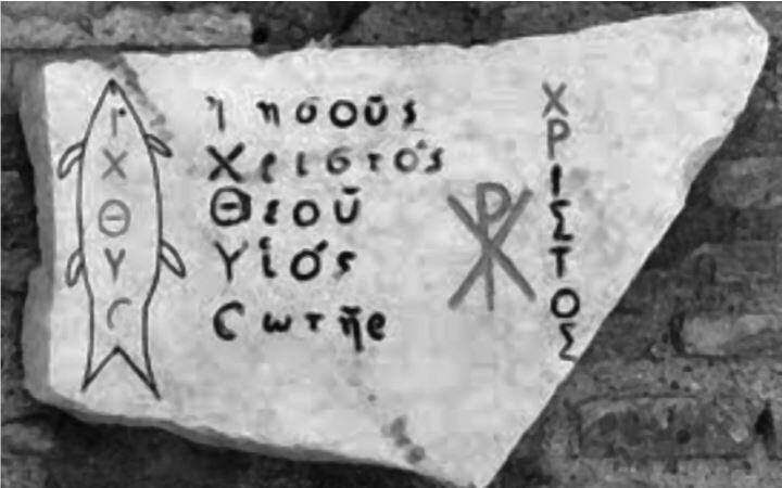 Почему рыба один из важных религиозных символов христианства? Потому что имя Христа, или даже его титул, по-гречески выглядит так: ΙΧΘΥΣ. Это акроним фразы ησος Χριστς Θεο Υς Σωτήρ, «Йезус Христос Теу Уйос Сотер», что переводится с греческого как «Иисус Христос Божий Сын Спаситель». Но ιχθυσ, «ихтус», это еще и «рыба» на древнегреческом. Получается, что перед нами все тот же ребус: картинка (рыба), заменяющая целую фразу. Кто мне не верит, может обратиться к трудам Тертуллиана («О крещении») или Августина Блаженного («О граде Божием») там все это подробно описано. Вот, кстати, каменный фрагмент, относящийся к эпохе раннего христианства, на котором запечатлен ребус с расшифровкой.