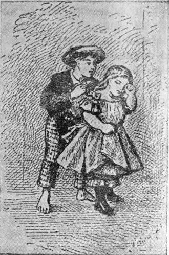 Потым ускочыла і пачала бегаць вакол парт, ратуючыся ад Тома, які ганяўся за ёй; потым зашылася ў кут і закрыла твар белым фартухом.