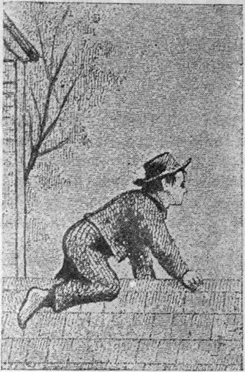Раптам праз сон ён распазнаў смутнае мяўканне кошкі. Недзе блізка стукнула акно, пачуўся голас: «Пшла прэч, праклятая!», і аб сцяну са звонам бразнулася пустая бутэлька. Том ускочыў, як ашпараны, мігам адзеўся, вылез праз акно і папоўз па даху, разы са два ціха мяўкнуўшы ў адказ; потым пераскочыў на страху хлевушка і адтуль саскочыў на зямлю.