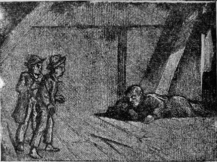 Але спакуса была надта вялікай, і хлопчыкі парашылі пайсці паглядзець, умовіўшыся, што зараз-жа завярнуцца назад, калі храп спыніцца. Ціханька, на пальцах, пачалі яны красціся к спячаму. Праз некалькі крокаў Том наступіў на дубец: той зламаўся і храснуў. Спячы застагнаў, перавярнуўся на бок, і прамень месяца ўпаў на яго твар. У хлапцоў кроў застыла ў жылах, і самі яны застылі на месцы, калі спячы паварушыўся; але цяпер страх мінуў: гэта быў Меф Потэр.
