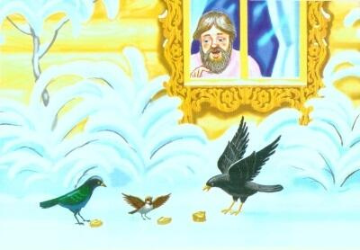 «А хватит ли троим одной небольшой корки?» подумал старик. Достал буханку белого хлеба, разломил на три части и бросил всё птицам.