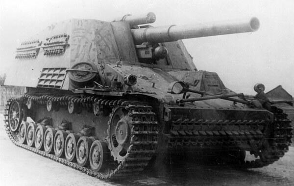 Спроектированное же шасси нашли пригодным: его решили использовать для размещения на нем 150-мм тяжелой полевой гаубицы sFH 18. Берлинская фирма Alkett, занимавшаяся разработкой этой машины, предложила сместить двигатель в центральную часть шасси, определив ему место сразу за отделением управления. Такая компоновка давала возможность смонтировать в корме боевую рубку с массивной артсистемой.