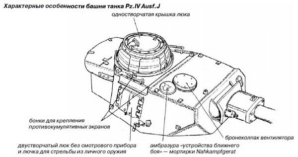 Последним вариантом Pz.IV стала модификация Ausf.J. С июня 1944 по март 1945 года завод Nibelungenwerke выпустил 1758 машин этой модели. В целом, подобные предыдущему варианту, танки Ausf.J претерпели изменения, связанные с технологическими упрощениями. Так, например, был ликвидирован силовой агрегат электропривода поворота башни и сохранился только ручной привод! Упростилась конструкция башенных люков, был демонтирован бортовой прибор наблюдения механика-водителя (при наличии бортовых экранов он стал бесполезным), поддерживающие катки, число которых на машинах поздних выпусков сократилось до трех, лишились резиновых бандажей, изменилась конструкция направляющего колеса. На танке устанавливались топливные баки повышенной емкости, в результате чего запас хода по шоссе возрос до 320 км. Для бортовых экранов широко стала использоваться металлическая сетка. Часть танков имела вертикальные выхлопные патрубки, подобные применяемым на танке «Пантера».