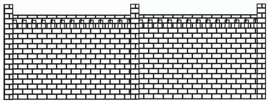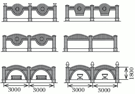 Рисунок 13. Кирпичный забор с коваными кольями (размеры указаны в миллиметрах)