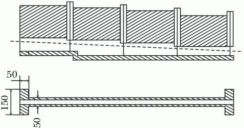 Рисунок 12. Прикрепление штакетника при помощи шаблона (размеры указаны в миллиметрах): 1 шнур; 2 шаблон; 3 доска, к которой крепится шнур
