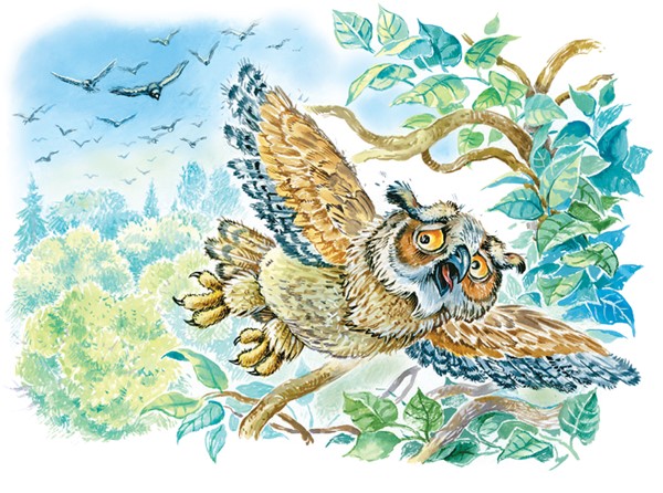 – Вóроны! – сказал филин Шуху. – Внезапно я услышал их карканье. Появилась огромная стая, штук тридцать или сорок. Они заметили меня и поняли, что я слеп и беспомощен. Они подлетели и начали кружиться вокруг меня, каркая мне прямо в уши. Но это было ещё не всё! Одна из ворон ударила меня клювом. Я не мог защищаться. Другие это увидели, и тогда все налетели на меня. Это был страшный миг, мой дорогой друг, поистине страшный! До сих пор не могу понять, как я в конце концов добрался домой. Еле живой прилетел я на свой дуб. У себя дома я был в безопасности. Но можете себе вообразить, в каком я был состоянии! Да, мой друг, мне было плохо, очень плохо! Я дал себе клятву всегда возвращаться домой перед рассветом. Во что бы то ни стало! Мы, ночные создания, не любим дневного света. Всё это относится и к вам, мой любезный друг, к вам в особенности…
