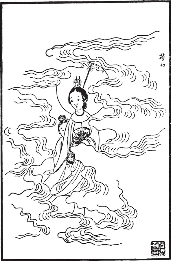 Не успела она произнести эти слова, как появились бессмертные девы. Кружились в воздухе лилейные рукава их одежд, трепетали на ветру крылатые платья; своей красотой девы были подобны весенним цветам, а чистотой и свежестью напоминали осеннюю луну.