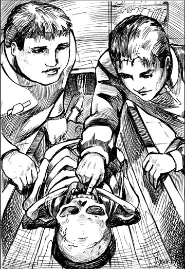 – Ой, не могу! Умора! Скелет в него вцепился! – взвизгивал он, держась за живот.