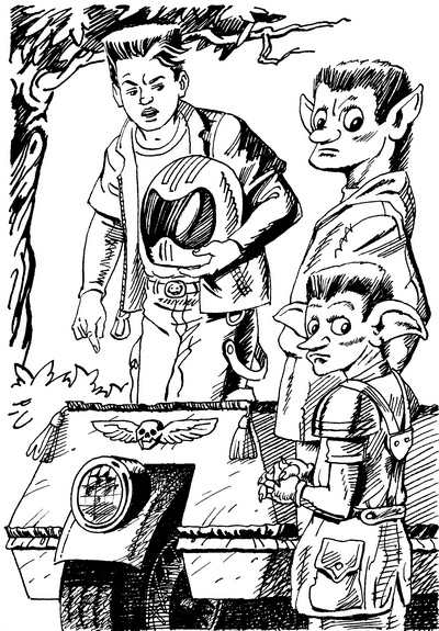 Если вы когда-нибудь гоняли на гробульнике с колесиками, то отлично представляете, что это примерно то же самое, что мчаться на мотоцикле. Вы сидите сверху гроба, свесив ноги, и подгоняете гробульник, колотя его пятками или кулаком по крышке. Разница только в том, что у мотоцикла вы держитесь за руль, а у гроба держаться совершенно не за что и при крутом повороте приходится то хвататься за кисти, то плюхаться на крышку животом, что страшно неудобно.