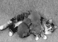 С помощью обоняния даже слепые котята безошибочно находят мать