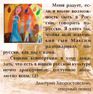 Россия для меня – это прежде всего страна, в которой я родилась, страна, на благо которой я хочу работать, страна, в которой, в отличие, к сожалению, от многих состоятельных людей, я хочу жить, и хочу, чтобы мои дети здесь жили, чтобы они воспитывались в рамках нашей культуры. Я надеюсь, что не окажусь надолго вдали от Родины. Во всяком случае я сделаю все для того, чтобы, наоборот, быть всегда здесь и созидать здесь, а не уезжать куда-то.