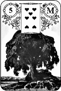 Издавна четырехлепестковый клевер считается талисманом успеха. Рядом с неблагоприятными картами (ГРОБ, КОСА, МЕТЛА) предупреждает о крушении планов, убытках, разочаровании – в таком случае для отвода плохих событий нужно приобрести и носить талисманы, амулеты или христианскую символику.