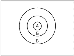 Рис. 1. Диаграмма сфер выживания: А – соматическая оболочка; Б – психологическая оболочка; В – духовная оболочка