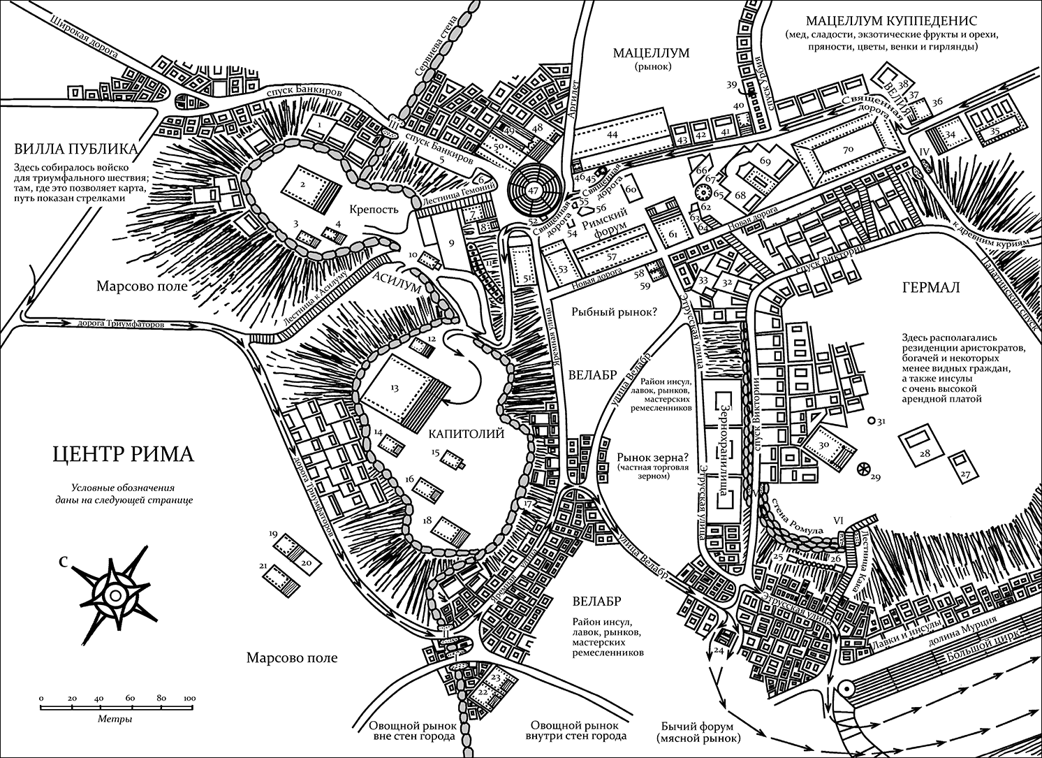 Условные обозначения к карте «Центр Рима»