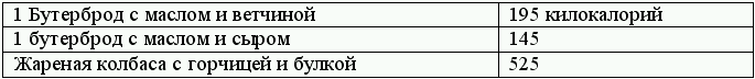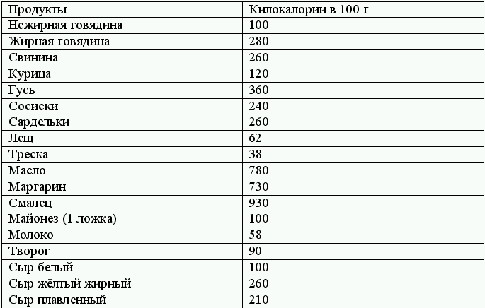 • если есть возможность выбора, отдавать предпочтение продуктам с наименьшим количеством калорий.