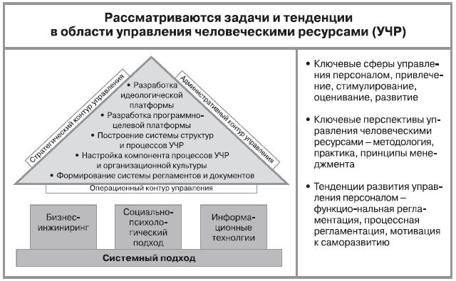 С точки зрения управленческой практики управление человеческими ресурсами – комплексное управление системой взаимодействия людей, объединенных совместной деятельностью в общем организационном пространстве. Ключевые термины: комплексное управление, система взаимодействия людей, организационное пространство. Комплексность управления означает то, что человеческим ресурсом следует управлять не как обычным ресурсом компании, но как саморазвивающимся ресурсом. То есть технические (профессиональные) и управленческие (стратегические и административные), «человеческие» компетенции менеджеров должны реализовываться в векторах согласованного целеполагания и сбалансированного воздействия. Организация системного взаимодействия людей имеет большее значение для эффективной деятельности компании, чем управленческое воздействие на каждого из сотрудников или вложение в те или иные организационные, финансовые, технологические ресурсы. Конфигурация и механизмы соединения индивидуальных компетенций в ключевые компетенции компании являются основными предпосылками успеха. Границы организационного пространства имеют тенденцию к расширению: не только штатный персонал, но также бывшие и будущие сотрудники, и даже поставщики и потребители попадают в поле деятельности менеджеров компании.