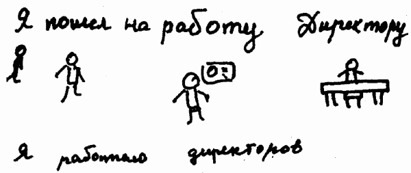 Берет карандаш и пишет под рисунком: «Я работаю директором».