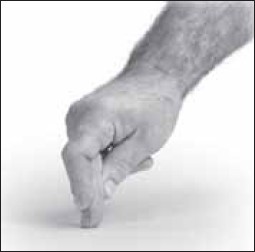 Применяют также воздействие концевой фалангой третьего пальца, зафиксированного между 1-м (большим) и 2-м (указательным) пальцами. Методика воздействия может быть стимулирующая, тонизирующая или седативная, расслабляющая. Если время контакта составляет 30–90 секунд, происходит стимуляция. При более продолжительном воздействии (от 1,5 до 2–3 минут) осуществляется седативное воздействие. Усилие направляют на концевую фалангу 3-го пальца (рис 14).