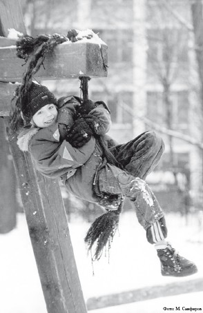 Этот мальчишка, который задорно смотрит на вас с фотографии, олицетворяет для меня детский мир, о котором пойдет речь в этой книге. Веселый, озорной и немного застенчивый, он не боится смотреть в глаза взрослому, если надеется на ответную симпатию и уважение. Он способен творчески «вписаться» в ситуацию, найти себе занятие даже там, где нет ничего привлекательного. Вот – уцепился за обрывок каната, раскачивается и доволен своей выдумкой.