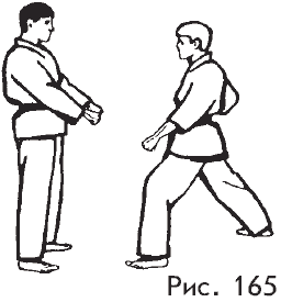 в) контратака в корпус тремя последовательными ударами руками (левой, правой и опять левой) (рис. 167, 168, 169).
