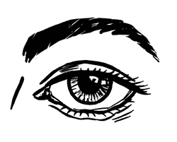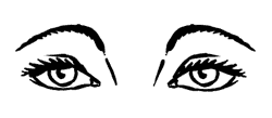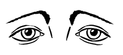 Вокруг таких глаз характерны толстая, слегка припухшая кожа в углах верхних век, изогнутая и слегка выступающая форма бровей.