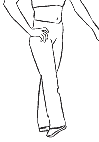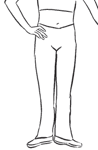 Пятая позиция: стопы расположены рядом и параллельно друг другу. Передние части стоп направлены строго вправо и влево.