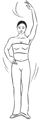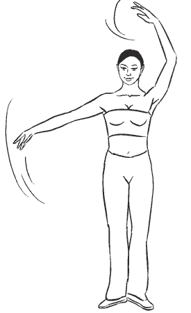 Третья позиция: руки из второй позиции плавно поднимаются вверх, кисти сохраняют балетную позицию.