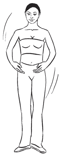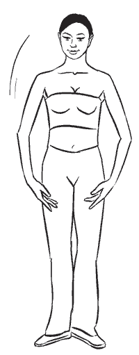 В положении стоя вы должны ощущать, как все тело тянется вверх – к потолку макушкой головы, и вниз – к полу; как при этом вытягивается позвоночник, а тело похоже на вертикальную прямую.