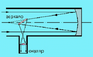 – Справа – это наше главное зеркало. На него падает пучок света от звезд и, отражаясь, возвращается обратно. Из-за того, что зеркало вогнутое, оно собирает лучи в фокусе. Перед фокусом мы поставим еще одно, маленькое зеркало, которое направит пучок в окуляр, через который и будем наблюдать за небом.
