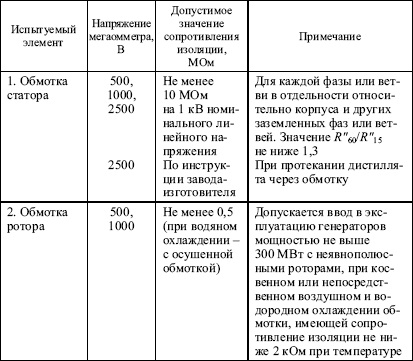 Вопрос 10. Каким должно быть сопротивление изоляции элементов синхронных генераторов и компенсаторов?