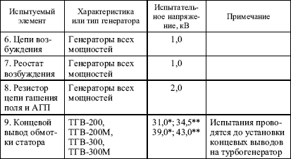 Испытательное выпрямленное напряжение для генераторов типа ФГВ-200 и ФГВ-300 соответственно принимается 40 и 50 кВ.
