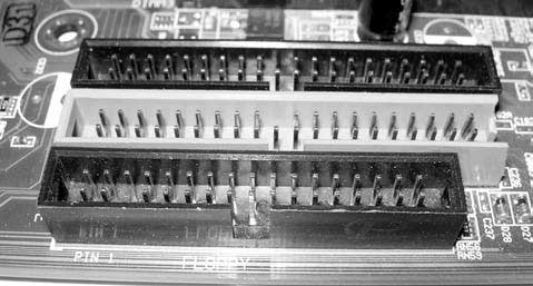 В зависимости от типа и предназначения, разъемы имеют различную форму. Изначально на материнской плате присутствуют разъемы для подключения IDE– или SCSI-устройств, FDD-разъем (рис. 2.16), разъем для подключения питания материнской платы и разъемы для вентиляторов. Кроме того, могут присутствовать ATA-разъемы, разъемы для подключения сетевого кабеля, разъемы для присоединения выхода звуковой карты, дополнительных портов, средств индикации и т. п.