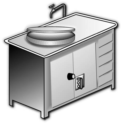 На рабочем месте повара должны быть настольные весы, комплект ножей поварской тройки, разделочные доски. Для нарезки, шинковки, протирания овощей используют универсальный привод со специальными механизмами, протирочную машину, для пассерования овощей – электрические сковороды, для снабжения горячей водой – кипятильники непрерывного действия. Кроме того, на рабочем месте повара, приготовляющего супы, устраивают охлаждаемую металлическую стойку со специями и приправами (горку).