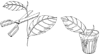 Рис. 25. Черенок фуксии со свернутым листом для предотвращения избыточного испарения