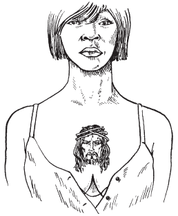 Религиозные чувства поможет выразить божественный лик, помещенный на деликатном месте, например на груди