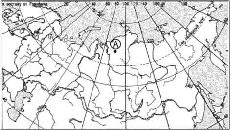2. Какие географические координаты имеет обозначенная на карте России точка А?