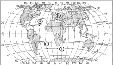 1. Какая из обозначенных на карте точек имеет географические координаты 40 с. ш. и 20 з. д.?