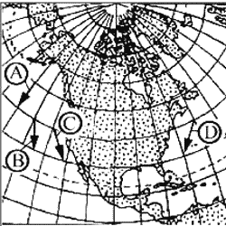 3. Какая из обозначенных на карте стрелок соответствует направлению «север-юг» на карте Северной Америки?