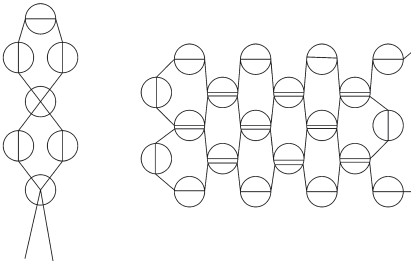 Способы плетения гобеленовым стежком: а) через 2 бисерины; б) через 1 бисерину