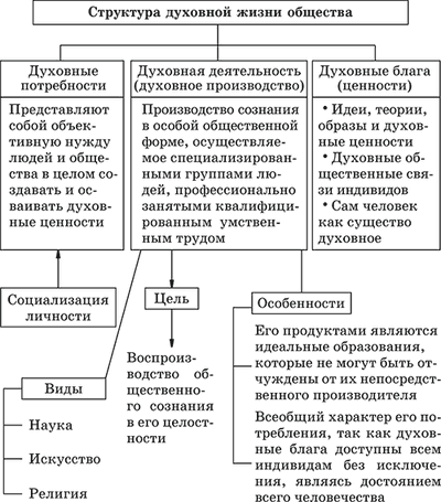 Духовная жизнь общества охватывает различные формы и уровни общественного сознания: нравственное, научное, эстетическое, религиозное, политическое, правовое сознание.