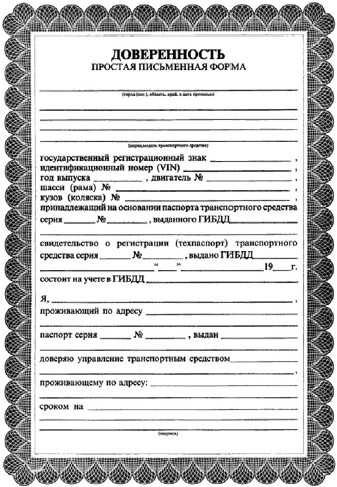 Рис. 1.18. Форма генеральной доверенности на автомобиль