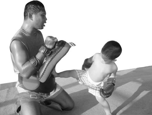 При посещении школы муай тай нередко можно увидеть кого-либо из малышей, усердно пинающего огромный боксерский мешок. Работа в парах носит характер игры. Дети изображают взрослых спортсменов, перенимают их жесты и манеру держаться на ринге. При имитации технических действий ребята очень старательно выдыхают воздух: и-ш-шш. Тем самым вырабатывается резкость (быстрота) ударных движений и правильное распределение дыхания.