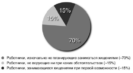 • 10–20 % работников совершают хищения при первой удобной возможности;