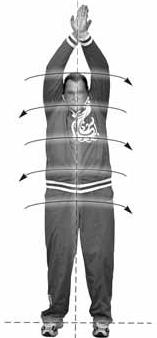 На уровне Родника мы максимально вытягиваем руки вверх, соединив ладони тыльными сторонами и продолжая колебаться в маятнике.