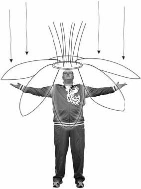 4. Ощущение «маховика». Руки опущены и чуть разведены в стороны до внутренней границы Ведогона (примерно 40 см от тела) на уровне Истока. Напомним, что Исток находится на длину ладони ниже промежности.