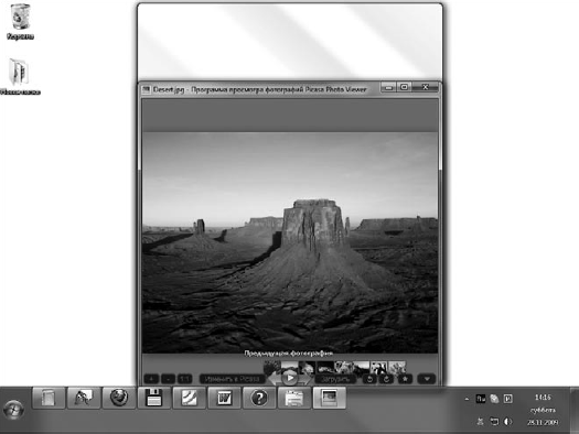 Еще одна приятная особенность стиля Windows Aero – наличие эскизов окон для кнопок запущенных приложений на Панели задач. Наведите указатель мыши на любую из них – и всплывающий эскиз сразу же проинформирует вас о содержимом окна (рис. 2.5).