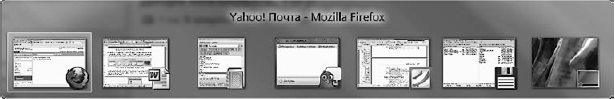 В Windows 7 сохранилась функция стандартного переключения между окнами с помощью сочетания клавиш Alt+Tab: на полупрозрачной панели появляются эскизы окон, а не их значки (рис. 2.4).