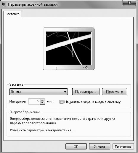 Рис. 2.14. Окно настройки экранной заставки