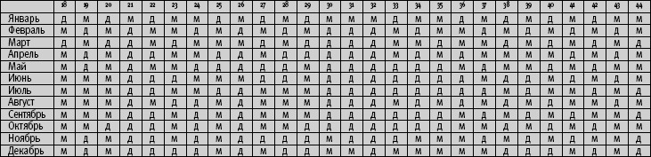 Таблица 1.1. Сроки зачатия мальчиков и девочек